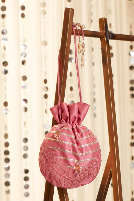 Rose pink potli bag featuring gota patti trims and sequin embroidery