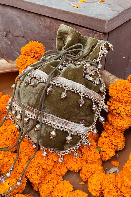 Drawcord with bead tassels, Lace trims along the edges, Intricate embroidery detailing