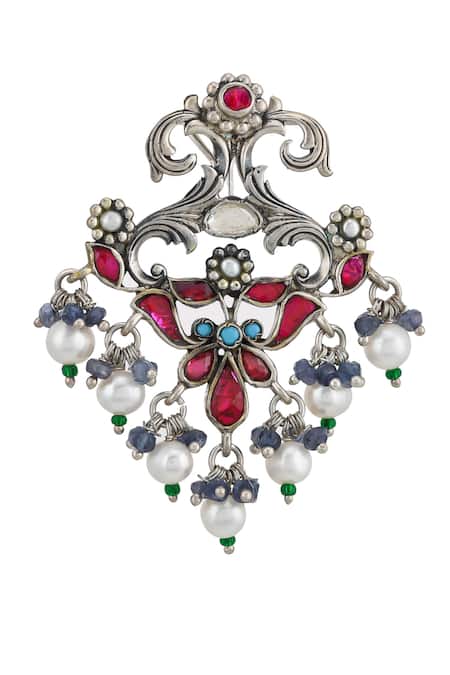 Embellished with intricate glass stones and semi-precious stones, Elegant pearl drops adding a classic touch