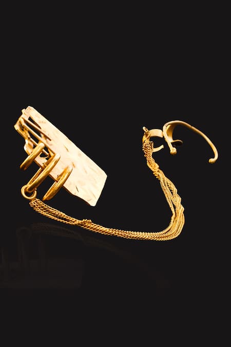 Chain tassels connected to the ear cuff, Melting brick shape design, Unique geometric detailing