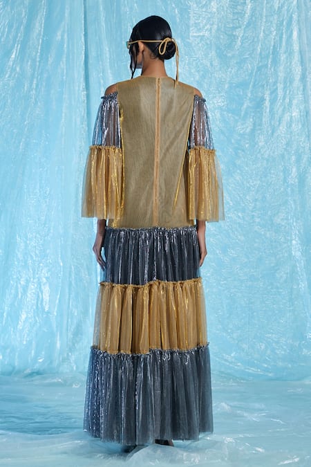 Multi Color Body Lurex Tulle (57% Metallic Fibre 43% Polyester), Tiered Gown