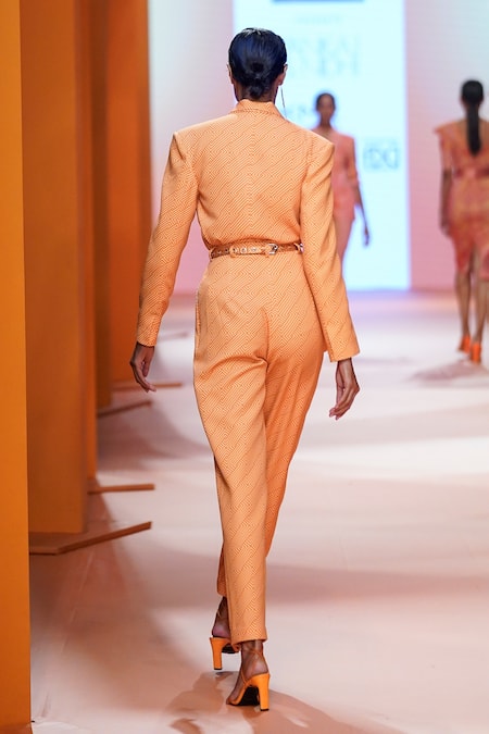 Buy_Pankaj & Nidhi_Orange Blazer Crepe Lined With Satin, Pant Akins Pattern And Set_at_Aza_Fashions