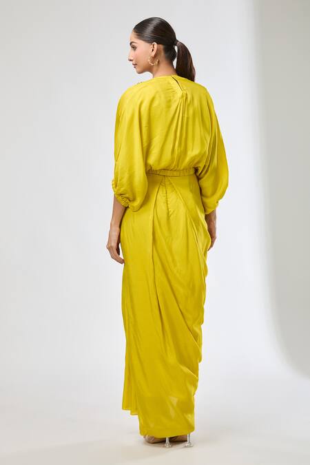 Yellow Silk Embroidery Round Neck Hand Kurta Set