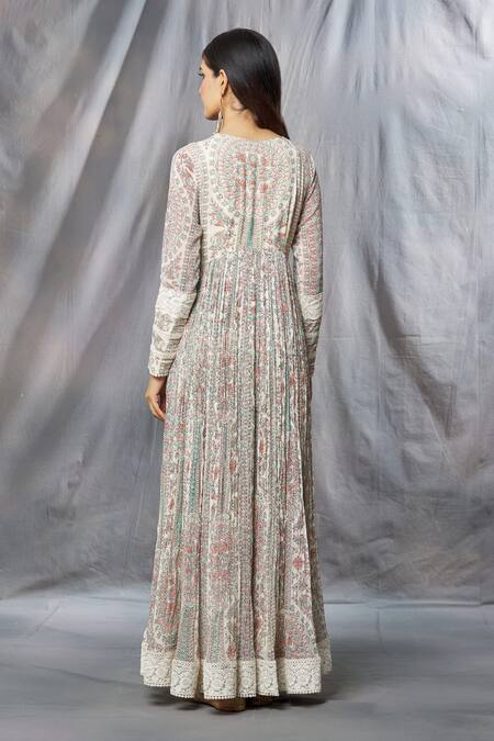 Ivory Georgette, Taffeta Lace, Mirrors, Madhubani Print Anarkali With Dupatta