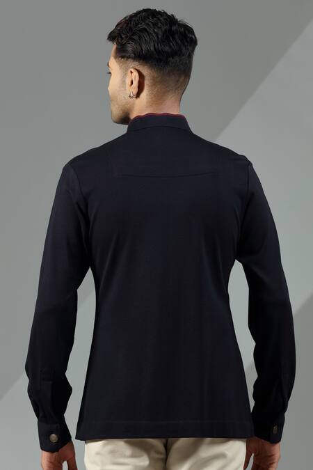 Shop_Albino_Blue Knit Cotton Overlap Shirt_at_Aza_Fashions