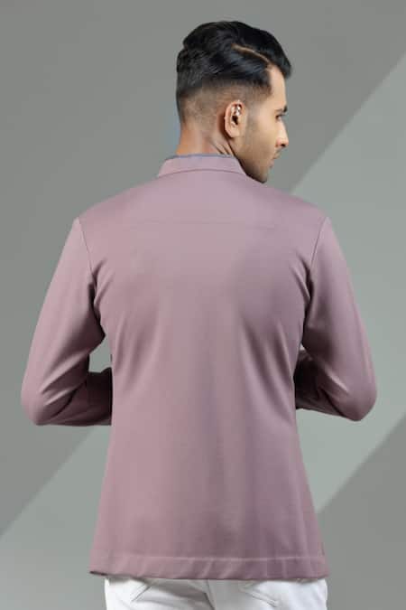 Buy_Albino_Pink Knit Cotton Overlap Shirt_at_Aza_Fashions
