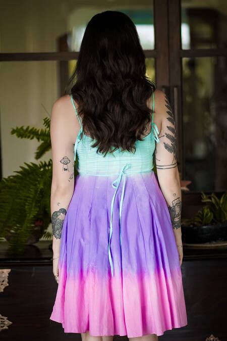 Buy_Aliaum_Multi Color Cotton Square Neck Ombre Dress_at_Aza_Fashions