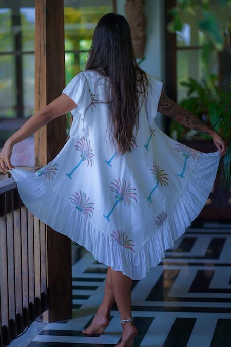 Buy_Aliaum_White Cotton Round Neck Palm Tree Print Midi Dress _at_Aza_Fashions