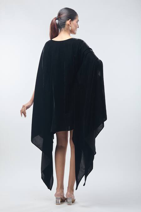 Electric blue rose embroidered kaftan dress with cape sleeve.