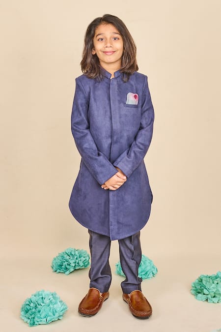 Blue Silk Navy Achkan Set