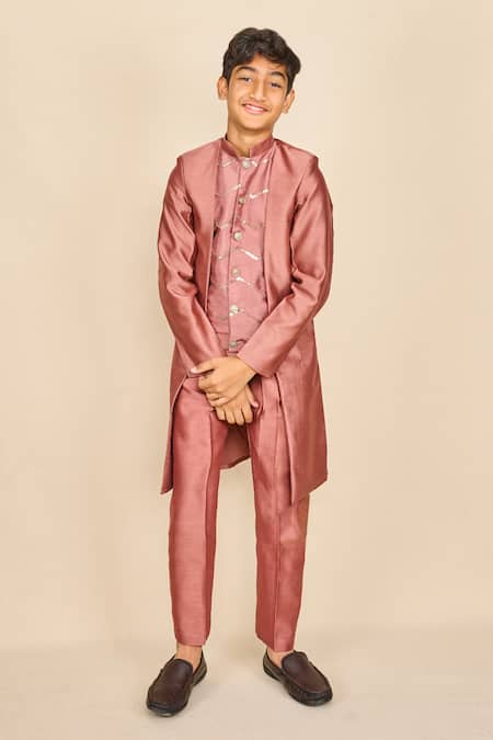 Pink Silk Sequins Rosewood Embroidered Achkan Set