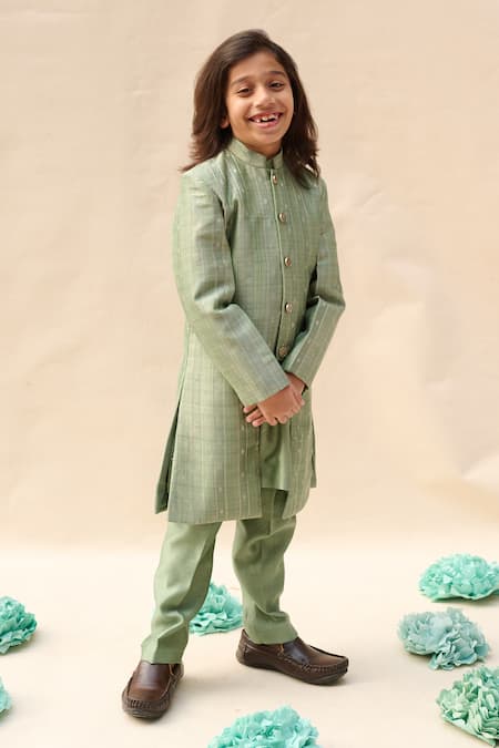 Buy_All Boy Couture_Green Silk Zari Woven Achkan And Kurta Set _Online_at_Aza_Fashions