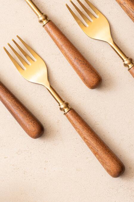 Buy_The Decor Remedy_Gold Brass Alloy Purpose Forks Of 6_at_Aza_Fashions