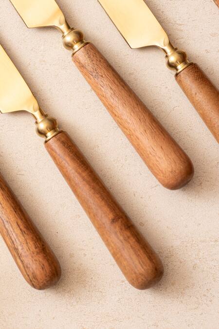 Buy_The Decor Remedy_Gold Brass Alloy Purpose Knives Of 6_at_Aza_Fashions