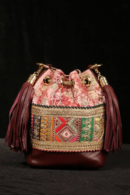 Buy_Aloha By PS_Pink Gota Patti, Sequins, Zari Beeba Embroidered Bucket Bag_Online_at_Aza_Fashions