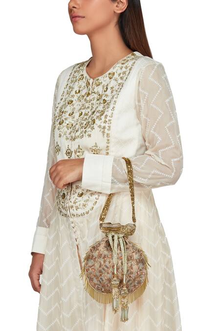 Gold Cut Work, Tassels Embellished Polti Bag