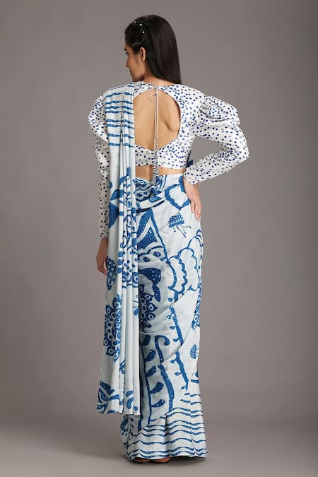 White Natural Crepe Ocean Print Saree