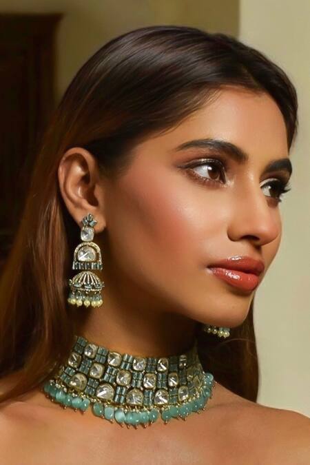 Real moissanite stones with pearl detailing, Intricate choker design, Elegant dori closure