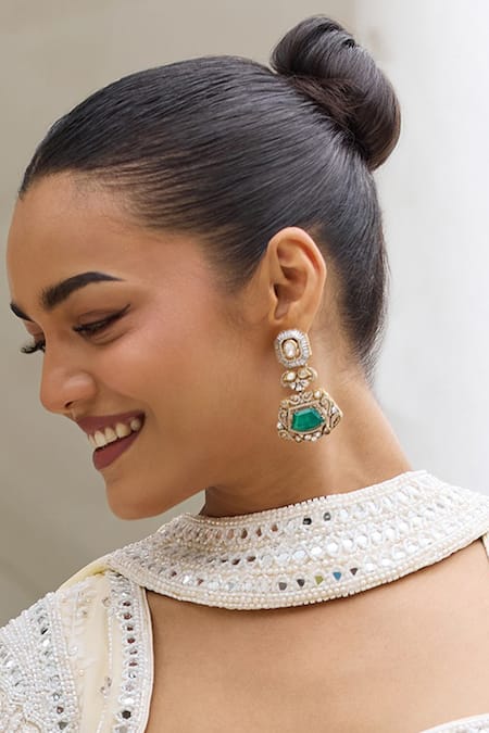 Intricate polki stone setting, Prominent emerald and ruby stone accents, Dori closure for adjustable fit