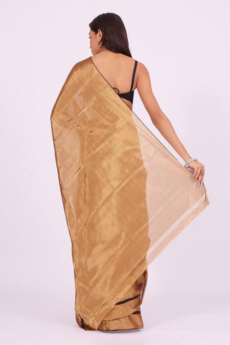 Buy_Amaara_Gold Chanderi Silk Dark Handloom Saree_Online_at_Aza_Fashions