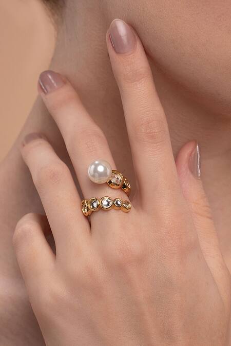 Buy_Isharya_White Cubic Zirconia Amara Pearl Swirl Ring_Online_at_Aza_Fashions
