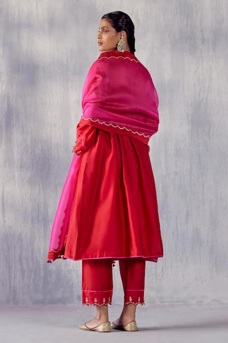 Buy_Amisha Kothari_Red Chanderi , Organza Embroidery Split Gulnaaz Sleeve Anarkali Set _Online_at_Aza_Fashions