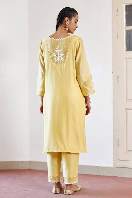 Buy_Amisha Kothari_Yellow Chanderi , Organza Cut Work, Safina Straight Kurta Set