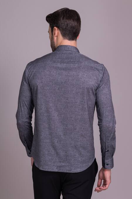 Grey Cotton Embroidery Bead Embellished Floral Shirt