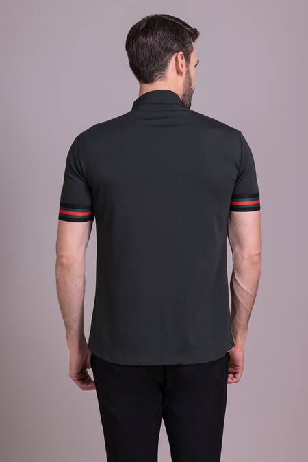 Bottle green half sleeve T-shirt featuring a collar neckline and front zipper closure