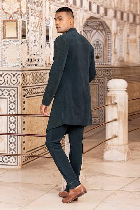 Green Corduroy Beads Hand Embroidered Bandhgala And Pant Set