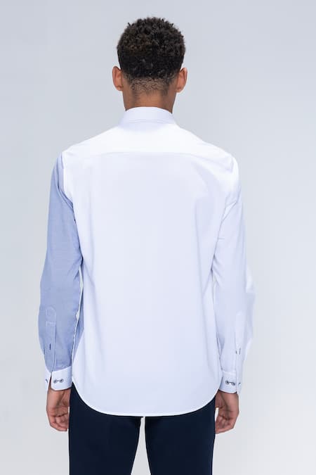 White full sleeved shirt featuring blue stripes and an embroidered zebra motif