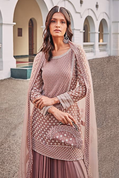 Pink Georgette And Soft Net Embroidery Luneville Tunic Sharara Set