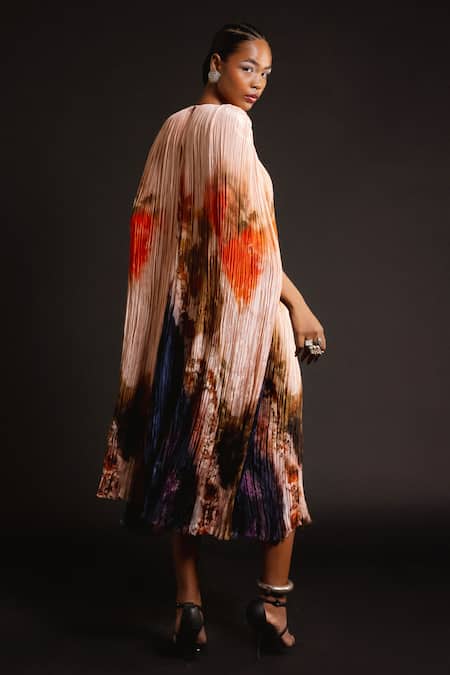 Malibu peach & Prussian blue kaftan featuring abstract ink dye with pleat detailing
