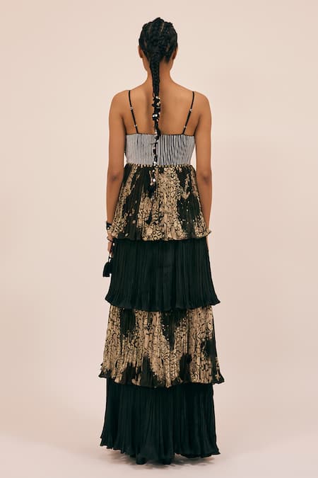 Pleat details enhancing the tiered design, Mirror and bead embroidery on the bodice