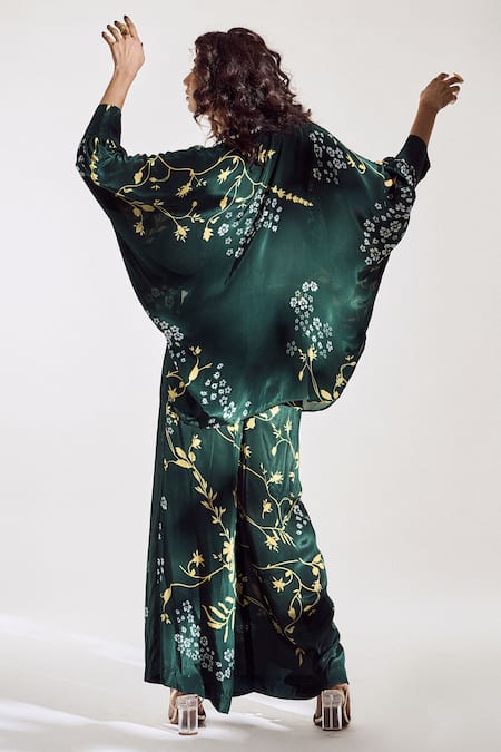 Green Crepe Azo Free Sustainable Ink Dye Spread Jordan Embroidered Pant Set