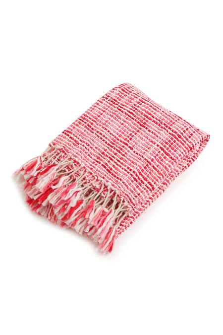 Buy_Amoliconcepts_Fuchsia 100% Wool Acrylic Thread Work Throw_Online_at_Aza_Fashions