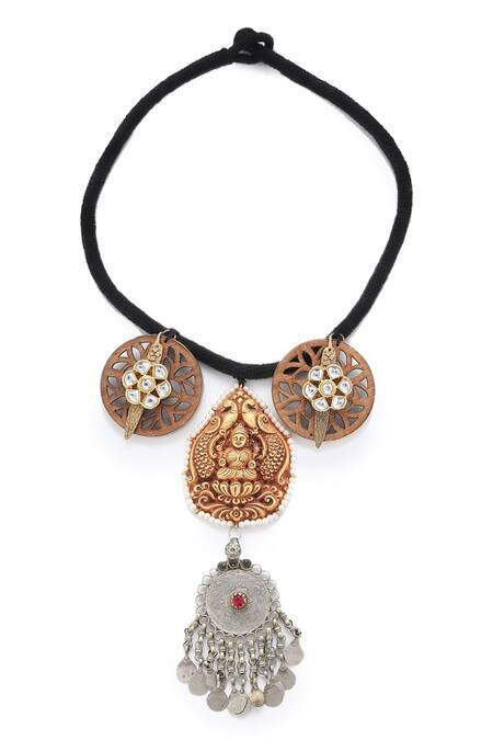 Buy_Amoliconcepts_Silver Plated Carved Deity Pendant Choker_at_Aza_Fashions