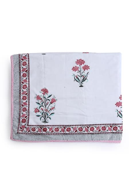 White Eco Friendly Cotton Hand Block Print Reversible Double Dohar