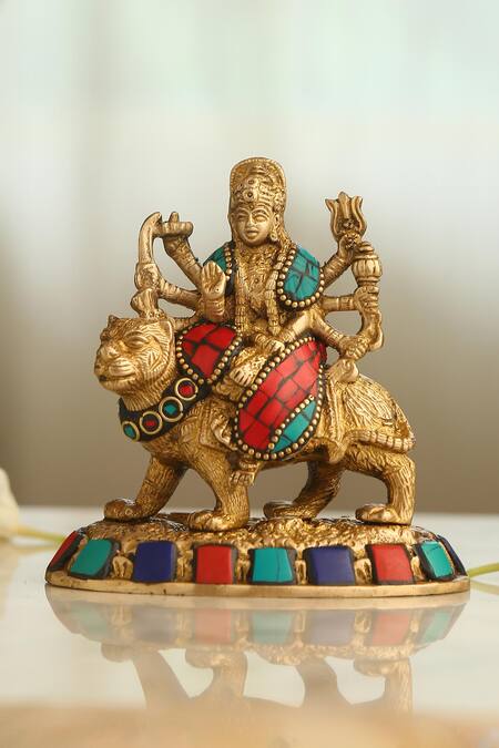 Buy_Amoliconcepts_Multi Color Brass Stone Durga Ma Carved Idol_Online_at_Aza_Fashions