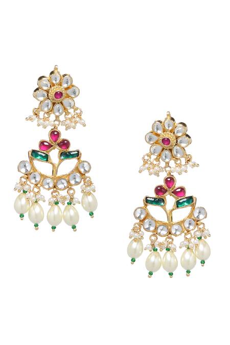 Buy_Amoliconcepts_Gold Plated Pearls, Beads, Gota Patti Floral Kundan Studded Drop Earrings_Online_at_Aza_Fashions