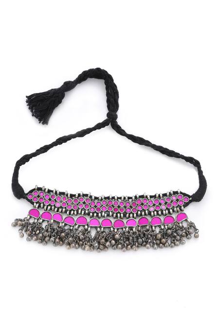 Buy_Amoliconcepts_Silver Plated Geometric Cutwork Glass Embellished Choker_at_Aza_Fashions