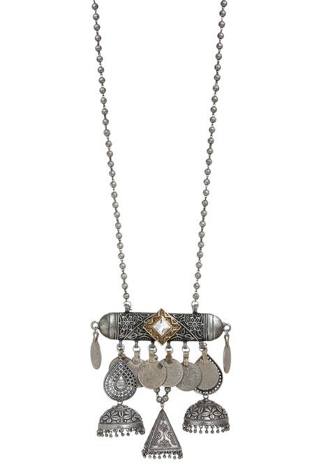 Buy_Amoliconcepts_Silver Plated Jhumka Pendant Necklace_at_Aza_Fashions