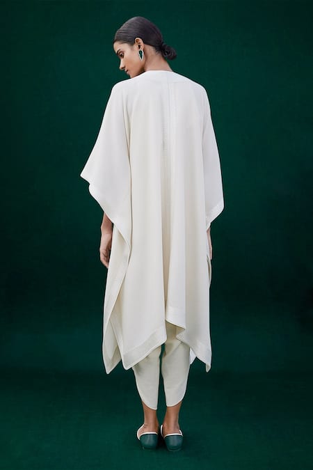 Buy_Ampm_Ivory Wool 140gm Cord Work Cape Open, Inner V Neck Adara And Dhoti Pant Set_at_Aza_Fashions
