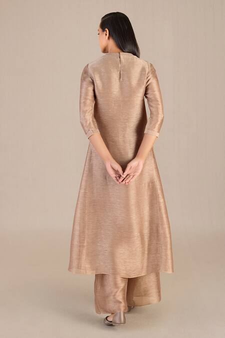 Brown Linen, Silk Round Neck Adiva Solid A-line Kurta Set