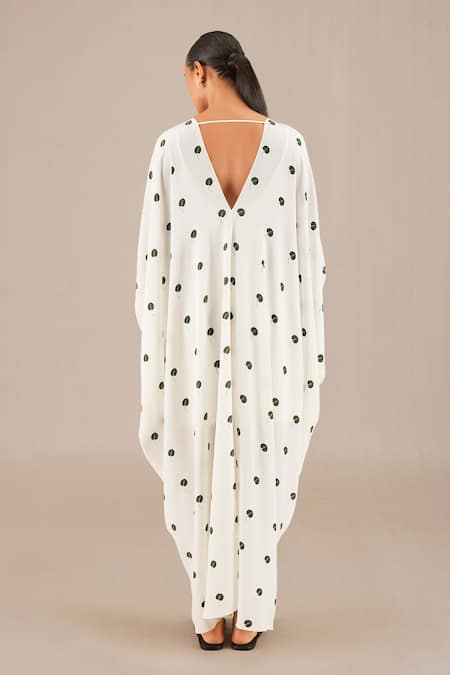 Ivory Crepe V-neck Aysha Asymmetric Kaftan Dress