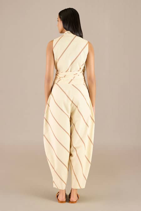 Green Cotton V-neck Hawaii Striped Band Wrap Top With Balloon Pant