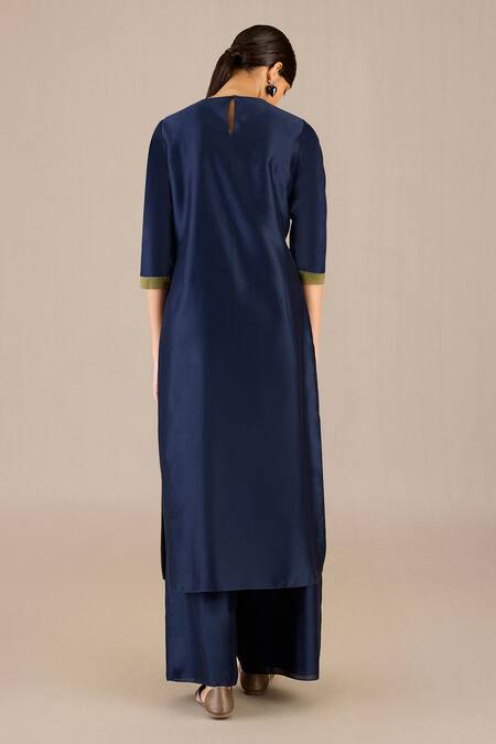 Blue Chanderi Round Neck Kasia Plain Kurta Palazzo Set