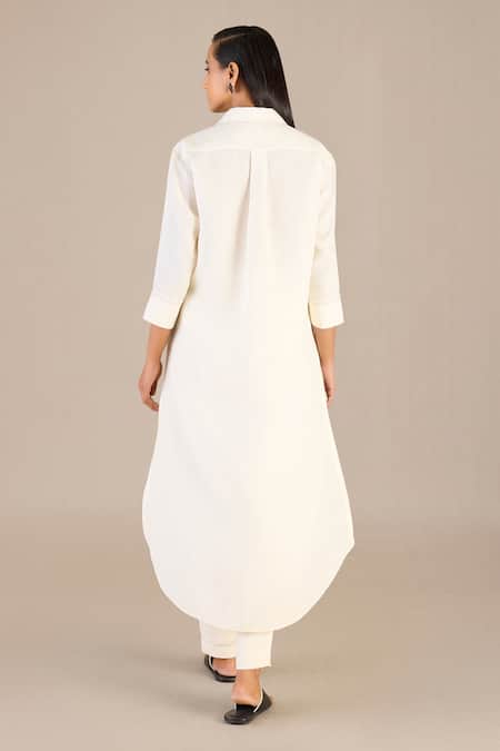 Ivory Linen Embroidery Collared Cord Work Kurta And Pant Set
