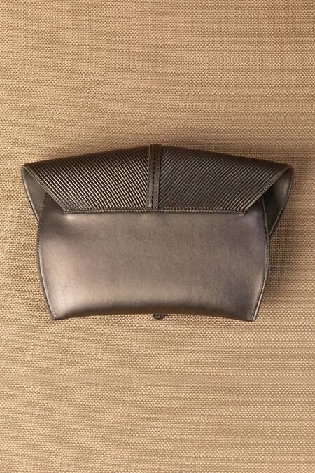 Gunmetal mini clutch featuring cord embellishment and a sleek design