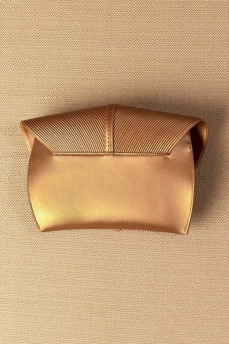 Gold mini clutch featuring cord embellishments with a sleek design